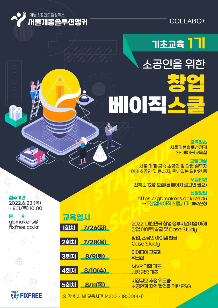 소공인을 위한 창업 기초교육인 [창업베이직스쿨 1기] 교육생을 모집합니다.