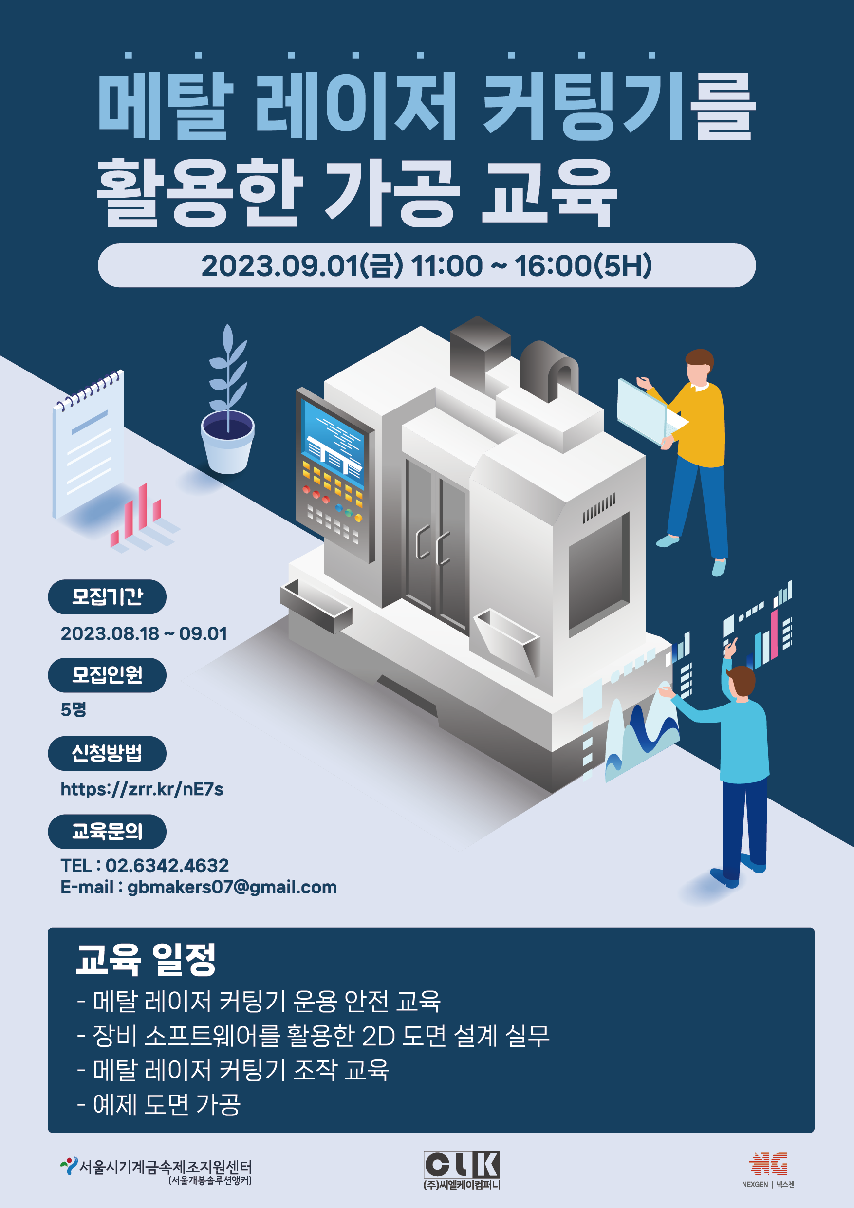 [서울시기계금속제조지원센터]에서 장비교육 [메탈 레이저 커팅기를 활용한 가공 교육]교육생을 모집합니다.