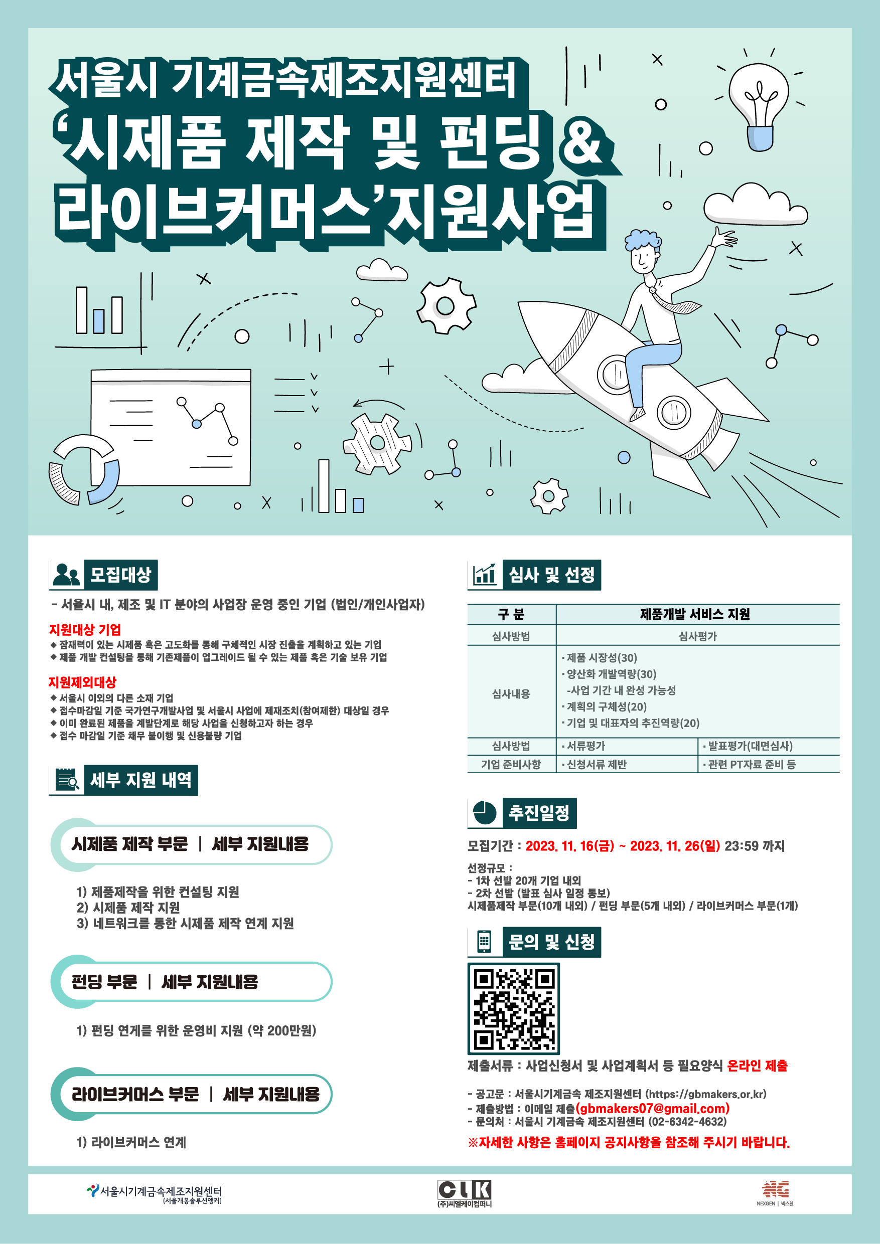 ❑ 사 업 명 : 서울시 기계금속제조지원센터 ‘시제품 제작 및 펀딩 & 라이브커머스’지원사업
